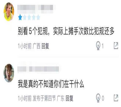要知道,俱乐部杯的比赛强度远不如常规赛,即便在这样的情况下,赵岩昊的状态都如此低迷,更加令人唏嘘的是,赵岩昊这场比赛不仅状态差,场上的态度也是一言难尽,有球迷表示:“别看5个犯规,实际上摊手次数比犯规还多。”