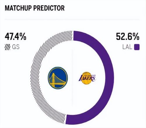 赛前,美媒ESPN对本场比赛进行了胜率预测,湖人队胜率为52.6% ,勇士胜率则仅有47.4% ,算是半斤八两。