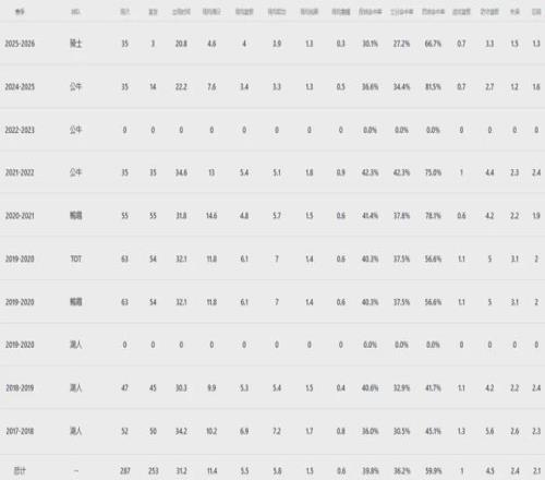 迄今为止九年的NBA生涯,球哥合计出战322场常规赛,平均每个赛季才打约40场球,尤其22-24连续两个赛季报销,至今没有打过一场季后赛。