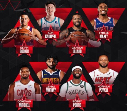 相较于扣篮大赛的名单,三分球大赛的名单就显得星光熠熠了,有布克、克尼普尔、马克西、米切尔、穆雷、波蒂斯、鲍威尔和利拉德。是的,因伤赛季报销的利拉德也进入名单了。