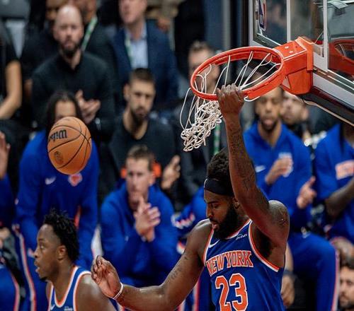 本场比赛中,尼克斯的替补中锋米切尔-罗宾逊(Mitchell Robinson)的表现还是相当突出的。罗宾逊全场出场15分58秒,投篮2中1,罚球8中3,得到了5分9篮板2助攻的数据,还有1次犯规,正负值则是达到了全场第三高的+15。罗宾逊的出场时间并不多,但是他还是展现出了自己全面的才能。罗宾逊在进攻端确实是粗糙了一些,他确实是没有能力得到更多的分数,甚至他在罚球线上的稳定性也是一塌糊涂的。不过罗宾逊在前后场篮板争抢方面的作用依然非常明显,他也是在出场时间非常有限的情况下拿下了大量的前场篮板。不仅如此,罗宾逊在护筐和内线防守方面也是能够起到一些作用的。罗宾逊在攻防两端都还是起到了很好的效果的,他在场上时球队的局面一片大好,这也能够体现在他超高的正负值上。