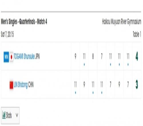 体育播报02月07日宣 乒乓球亚洲杯男单1/4决赛,林诗栋鏖战七局,最终3-4不敌户上隼辅,无缘亚洲杯男单4强。