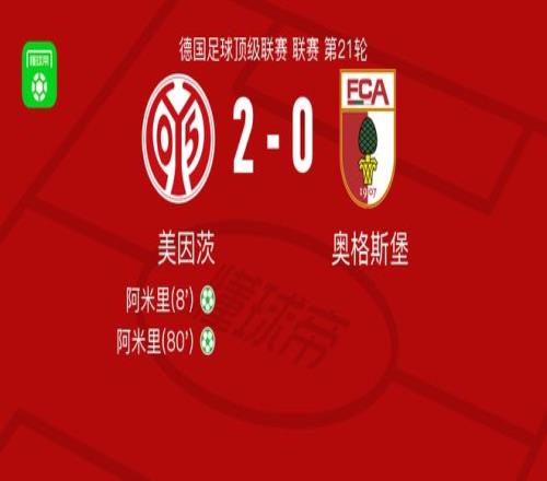 北京时间2月7日德国足球顶级联赛 联赛 第21轮,美因茨主场对阵奥格斯堡。美因茨阿米里梅开二度。最终比分美因茨 2-0 奥格斯堡。
