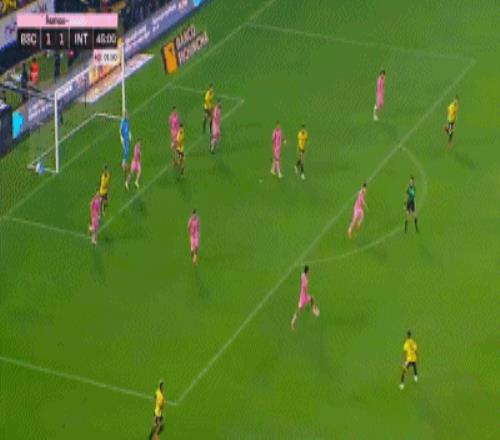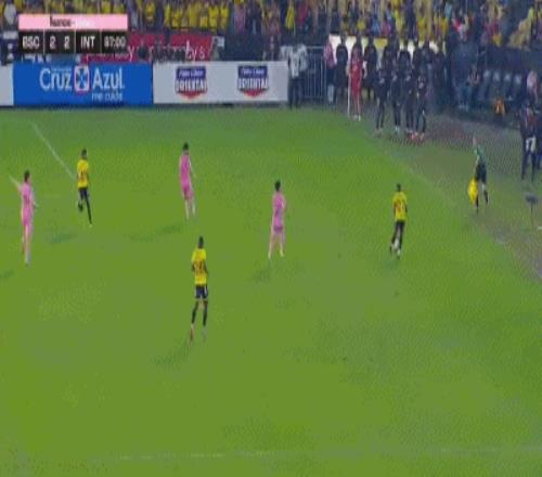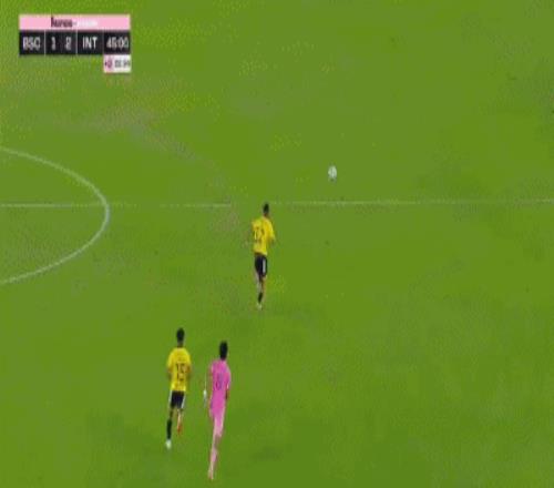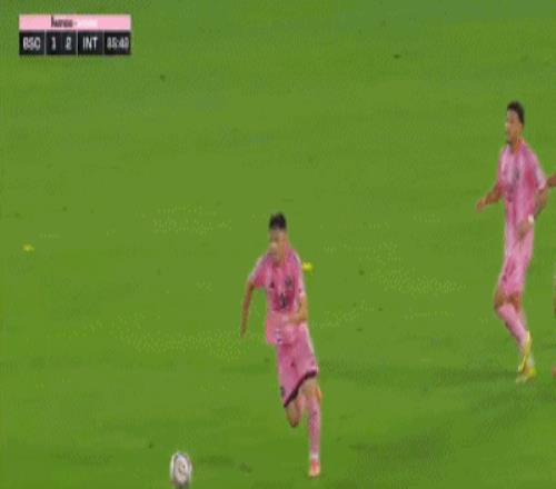 第45+3分钟,梅西送助攻,新援贝尔泰拉梅低射得分,迈阿密国际2-1