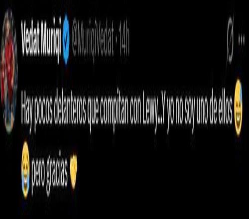 这位科索沃国脚也在社媒幽默地回应道:“能和莱万相提并论的前锋没几个……而我可不是其中之一啊,但还是谢谢了。”