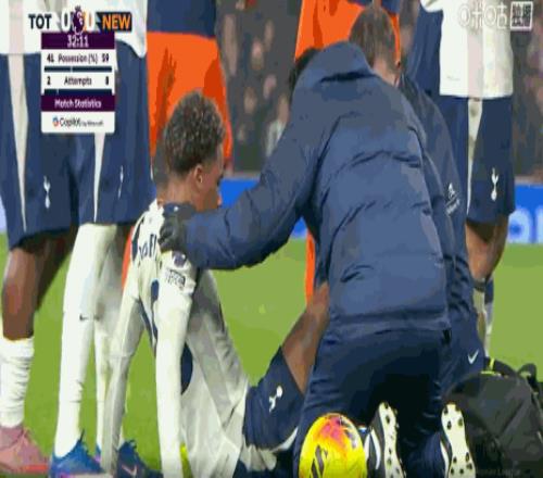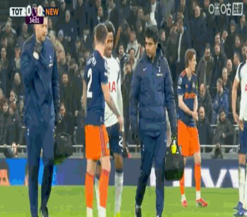 热刺对阵纽卡的比赛中,前锋奥多贝尔在上半场和纽卡前锋哈维-巴恩斯身体碰撞受伤离场。