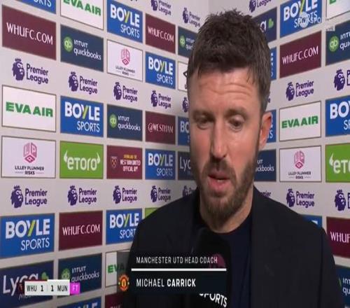 率队在英超第26轮1-1绝平西汉姆联后,曼联主帅迈克尔-卡里克接受了TNT体育的采访。