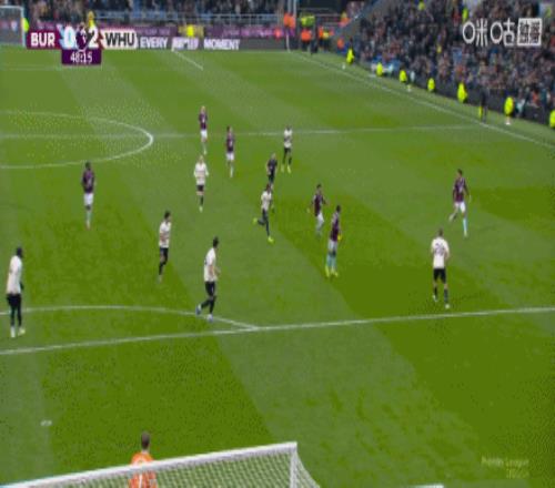 第12分钟,萨默维尔单刀面对门将,轻挑破门,伯恩利0-1西汉姆联